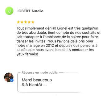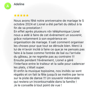 2002 à 2008 - DJ résident discothèque l’Atlantide à Sens 2007 - DJ d’Or révélation 2013 à 2022 - DJ résident du Nyx Club à Auxerre 2015 - Double prestation à l'évènement Best of France, à Times Square, New York Depuis 2020 - Spécialisation dans l’événementiel & le mariage, avec + de 150 prestations 2023 à 2025 - Bal annuel des pompiers d'Auxerre (5400 personnes) - - - - - - - - - - Depuis 1999 - Discomobile / soirées privées / mariages 2009 à 2013 - Événementiels / soirées privées / mariages / prestations en Clubs : L’ Atlantide (28), Le Paparazzy (10), Le Paradox (21), Le Glam’s et Le Styliss (89),... 2014 - Inauguration du Céleste Club à Sens 2017 - DJ résident mensuel à l'Evidanse Club à Sens 2018 - DJ guest au ICE club, Vivanta by Taj, à Bangalore, Inde Depuis 2022 - Soirées privées Bars & Clubs : L'Auxervoise, Mr Le Zinc, Brasserie de la Gare, l'Atlantide, ... - Comités d’Entreprises : Galeries Lafayette, Caisse d’Épargne, Volkswagen, RATP, Groupama, ...